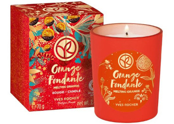 A candle in one of Yves Rocher's two holiday flavors for 2021: Melting Orange / Orange Fondante (the other is Delectable Blackberry / Mûre Gourmande). "Enjoy a soft and warm ambiance during the holidays thanks to the delicious Chocolate and Orange notes found in this Limited Edition Melting Orange Candle made in France." $12 for 70g at Yves Rocher USA.